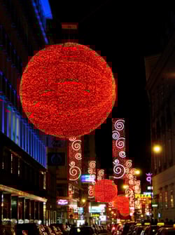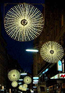 250.000 LED-Lichter der sieben Kugeln, die einen Durchmesser von knapp vier Metern haben und eine Kugel beinahe 250 kg wiegt, tauchen die Rotenturmstraße in festliches Rot und sind ein wahrlicher Hingucker!