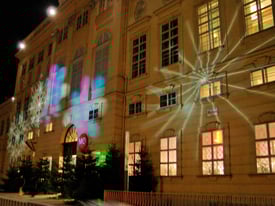 Neben dem Graben, in der Spiegelgasse und am Lobkowitzplatz strahlen 25 dieser schönen Spiegelsterne mit einem Durch-messer von je 2,60 m und etwa 2.500 LED-Lichtern.