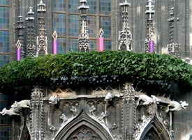 Diese Weihnachtsbeleuchtung am Dom ist aber schlicht gehalten, dennoch wirkt der Dom mit mit seiner Beleuchtung wie ein farbiger Fels in der nächtlichen Weihnachtsbetriebsamkeit.