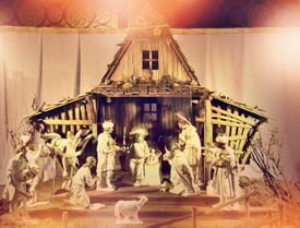 Hier ein Foto aus einer der stimmungs-vollen Krippenausstellungen in der Krypta der Peterskirche.