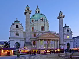 Direkt vor der Karlskirche, neben der Technischen Universität Wien, findet jährlich ein Weihnachtsmarkt
