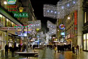 Der weihnachtliche Glanz der Rotenturm-strasse ist vom Schwedenplatz bis hin zum Stephansdom zu