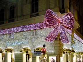 Das Modenhaus Popp & Kretschmer, Kärntnerstraße/Walfischgasse hat sich eine Glitzerschleife umgebunden.