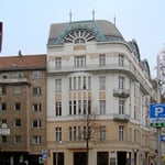 Das turmartige Wohnhaus, in dem auch ein Cafe untergebracht ist, entstand 1902 nach Entwurf des Architekten Oskar Marmorek ... einem Otto Wagner-Schüler.