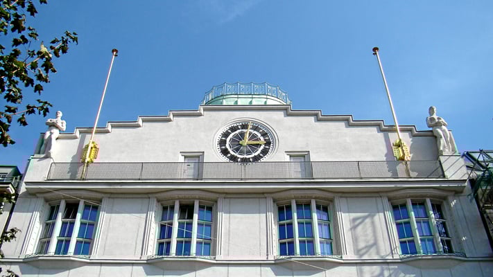 Ein paar Schritte weiter befindet sich die "Secession." Ein weißer, fast fensterloser Bau mit einer aus 3000 vergoldeten Blättern und 700 Beeren bestehenden Kuppel.