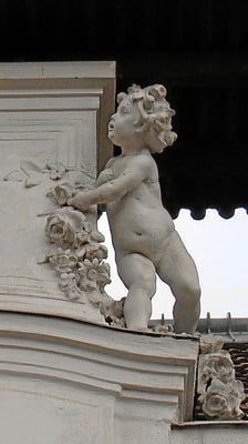 Die Engel zu beiden Seiten der Portalöffnung können als figurale Pfeiler interpretiert werden, die die tragenden Mauerteile optisch verstärken.