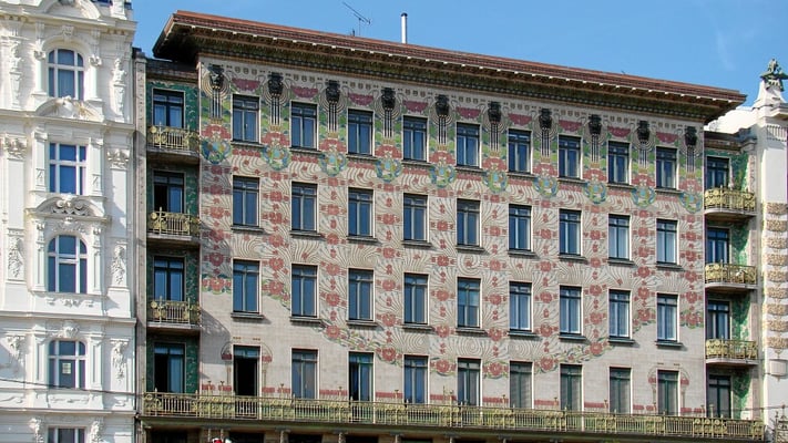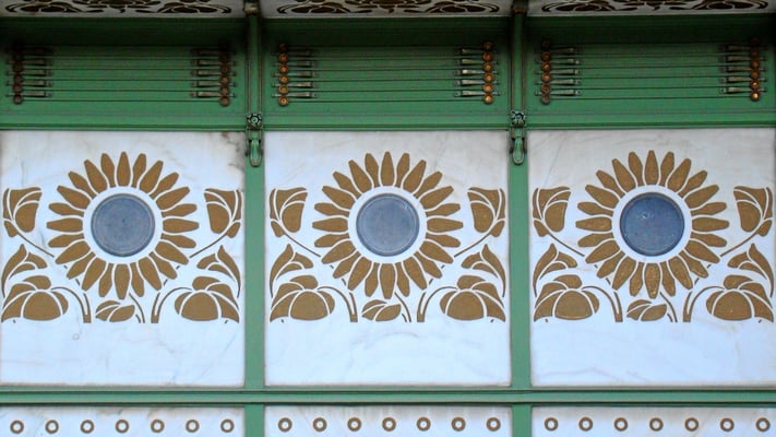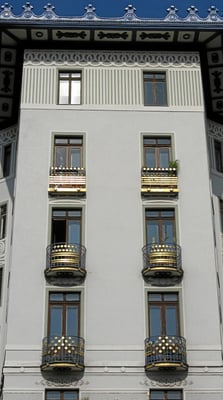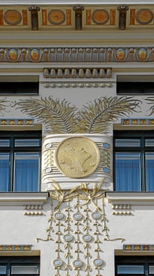 Die goldenen Reliefe am Haus Nr. 38 entwarf Kolo Moser. Bei den Wienzeile Häusern waren Studenten von Otto Wagner beteiligt - Gustav Rossmann, Alois Ludwig, Joze Plecnik, Joseph Maria Olbrich.
