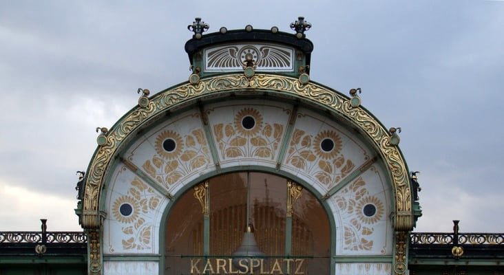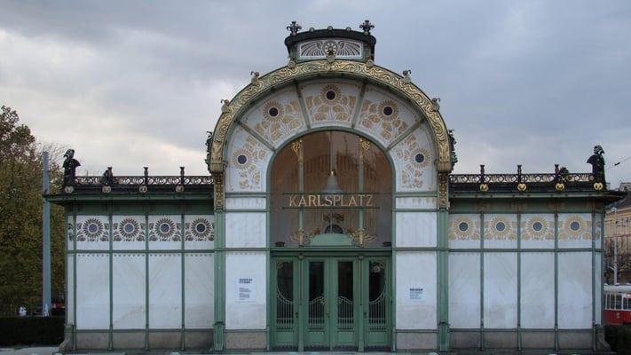 Die beiden "Stationsgebäude am Karlsplatz" wurden von Otto Wagner 1898 - 1899 unter Beteiligung von Joseph Maria Olbrich mit Konstruktionsdetails von Karl Fischl, errichtet.