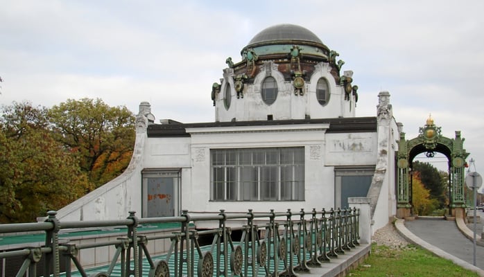 Otto Wagner hat diesen Pavillon ohne Auftrag 1898/99 entworfen. Das Gebäude liegt unmittelbar über dem Gleiskörper der ehemaligen Stadtbahn (heute U4). Grundriß, Silhouette und Dekor weisen ihn als etwas Besonderes aus. Den Pavillon betritt man über eine überdachte Rampe mit Schmiedeisengitter.