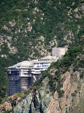 Eines der bekanntesten Klöster. hier wird der Wein auf Athos gemacht, der Monoxylitis. Gegründet wurde das Kloster 1389 vom Hl. Dionyssios und es ist eines der drei wichtigsten Klöster auf Athos. Heute leben hier 75 Mönche.