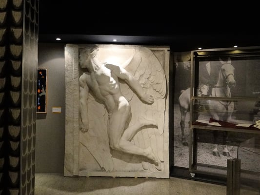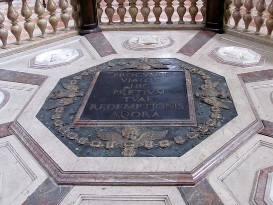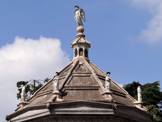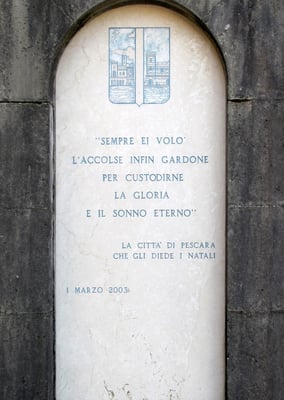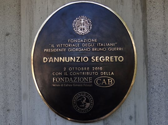 Die dort aufgestellten spätantiken Sarkophage enthalten die sterblichen Überreste D'Annunzio's und der sogenannten "Helden von Fiume." Sein Sarkophag steht auf vier Säulen in der Mitte der oberen Plattform, wo seit 1963 seine sterblichen Überreste bestattet sind.