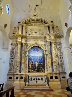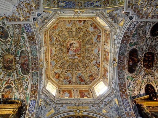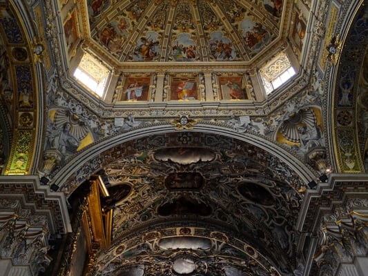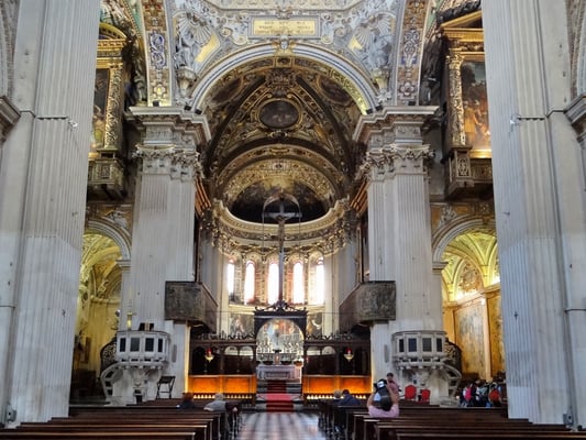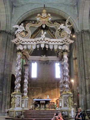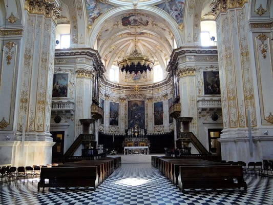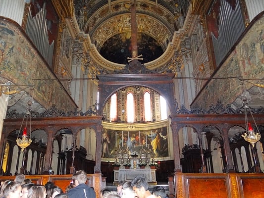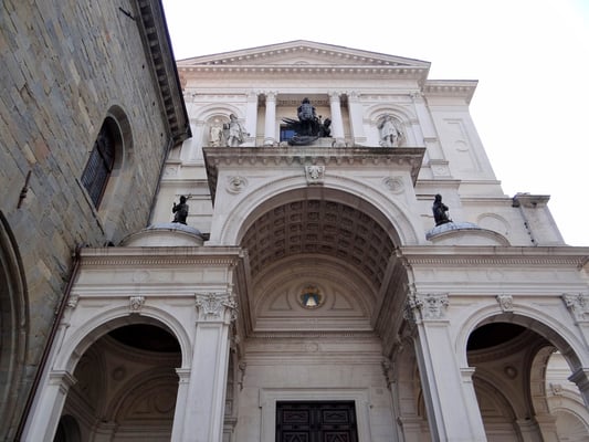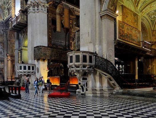 Passiert man den Palazzo delle Ragione, ist man auf der Piazza Duomo mit dem etwas unscheinbaren weißen Dom und gegenüber der Marmor-Kathedrale Santa Maria Maggiore mit der angebauten Colleoni-Kapelle, in der sich die Grabmäler des Generals Barolome Colleoni und seiner Tochter Medea befinden. Im Inneren der Kapelle durfte nicht fotografiert werden.