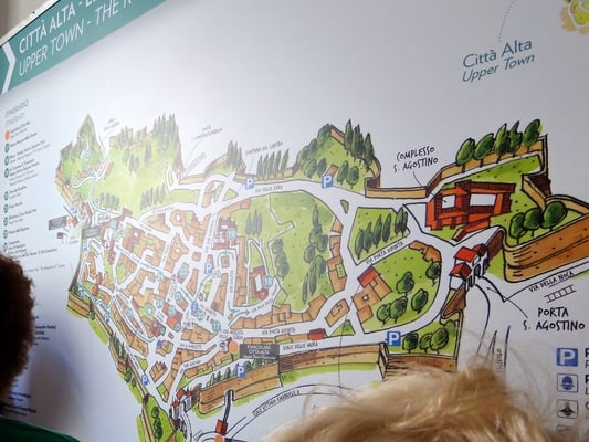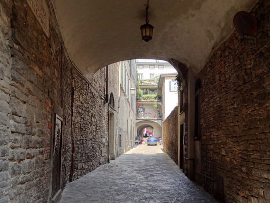 Die Città Alta von Bergamo befindet sich wie eine Festung von Stadtmauern umgeben, auf einem Hügel. Eine Standseilbahn führt von der Unterstadt hinauf. Der Höhenunterschied beträgt 85 m, wobei das höchste Gefälle 52 % ist. Die Altstadt ist fahrzeugfrei und steht zur Gänze unter Denkmalschutz.