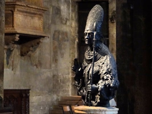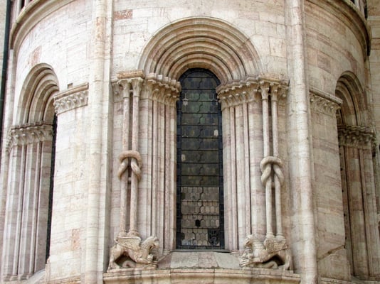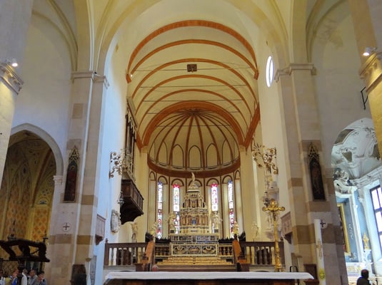 Die San Vigilio Kathedrale, der Dom von Trient, wurde auf einer Fläche erbaut, auf der ein Tempel des Schutzheiligen der Stadt, San Vigilio stand. Fürstbischof Ulrich II begann im 11. Jhd. mit dem Bau der Kathedrale, die 1212 fast vollständig niedergerissen wurde, um dem neuen Dom, im romanisch-lombardischen Stil Platz zu machen. Gegen Endes des 13. Jhd. wurde das nördliche Querschiff mit einer allegorischen Rosette geschmückt, dem "Glücksrad."