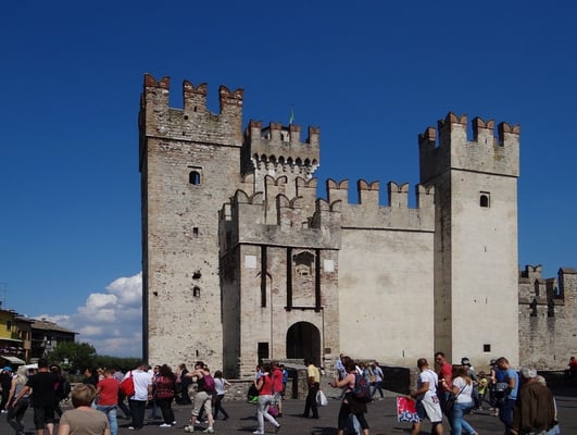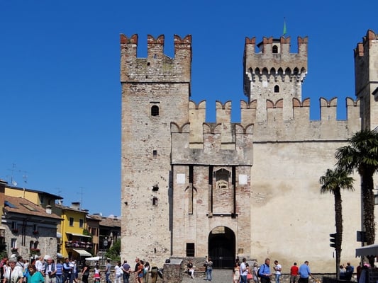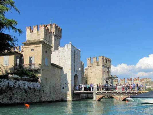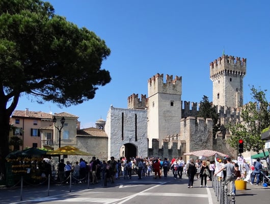Der Ort am Ostufer wirkt romantisch und schon von Weitem ist das mächtige Skaliger-Kastell zu sehen. Das ovale Hafenbecken ragt bis an den den Rand der Altstadt und ist mit seinen Booten ein Ort der Idylle.