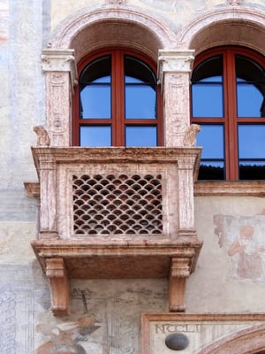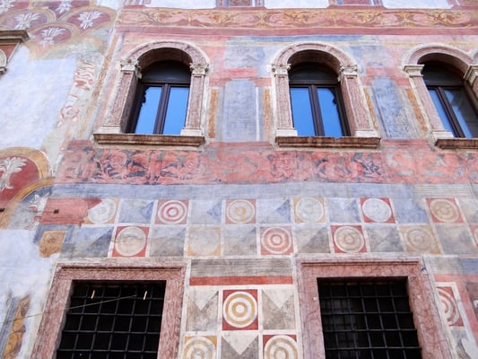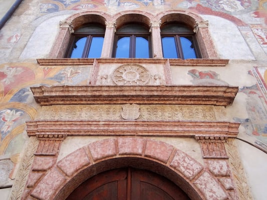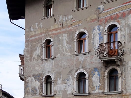 Die Häuser Cazuffi - Rella sind zwei benachbarte Gebäude. Die Fassade zum Platz ist mit Fresken geschmückt, die wichtige Ereignisse darstellen.
