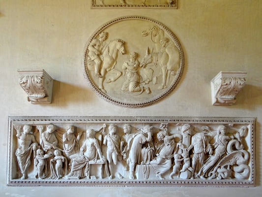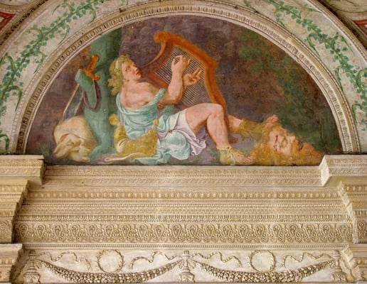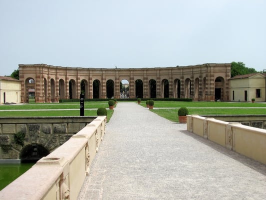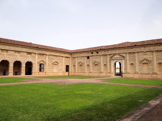 Mit dem Bau des Palazzo del Te' wurde Architekt Giulio Romano, ein Schüler Raffaels, beauftragt, den den Rohbau eines rechteckigen Hauses um einen Hof in 18 Monaten erstellt.