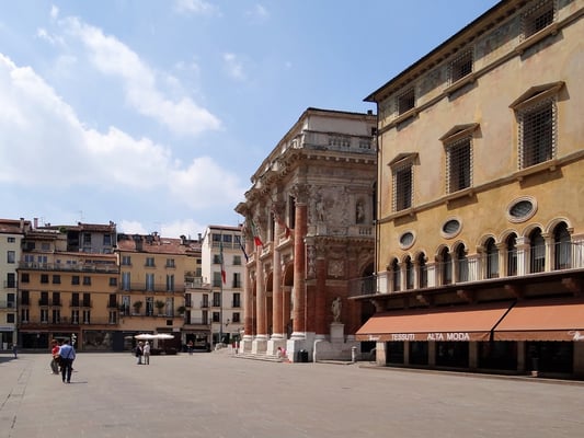 Am Hauptplatz befindet sich auf dem Platz, wo früher der Palast der Familie Bissari stand, der ehemalige Justizpalast "Basilica Palladian", die "Loggia des Capitanio", der Repräsentationssitz der früheren Republik Venedig, der Stadtturm "Torre Bissara", den man für einen Kirchturm halten könnte und die beiden Säulen aus dem 15. und 17. Jhd. Direkt daneben ist die Piazetta Paladio mit dem Denkmal des berühmten Architekten.