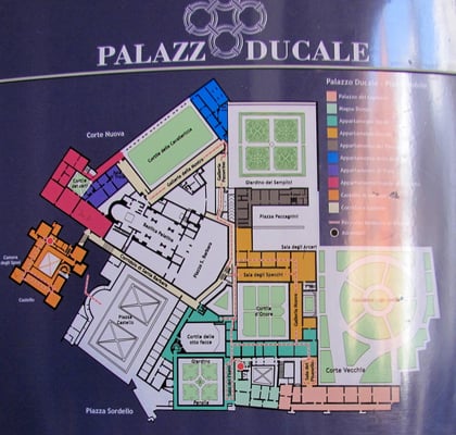 Hier haben wir den "Palazzo Ducale", den Herzogspalast, besucht, ein Gebäudekomplex, der von der Familie der Gonzaga als Herrschaftssitz errichtet wurde. Dieser Palast ist kein einheitliches Bauwerk, sondern eine Gesamtheit mehrer verschiedener Baukörper.