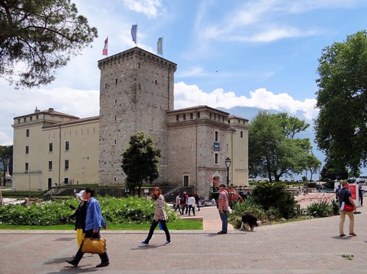 die Rocca di Riva, die Stadtburg, die ganz vom Wasser umgeben ist. Die später im Besitz der Skaliger befindliche Burg erhielt ihr heutiges Erscheinungsbild im 16./17.