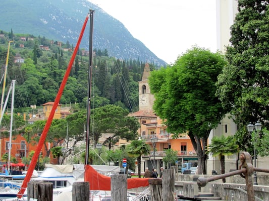 Malcesine liegt im Nordosten des Sees und direkt am Fuße des Monte Baldo und wird von der Skaligerburg dominiert. Rund 3.500 Menschen leben hier. Der Ortskern besticht durch seine verwinkelten Gassen und altmodischen Pflasterwege.