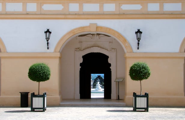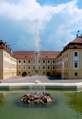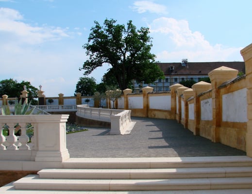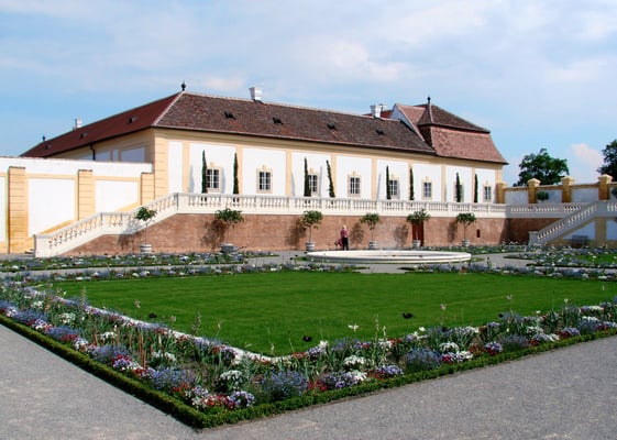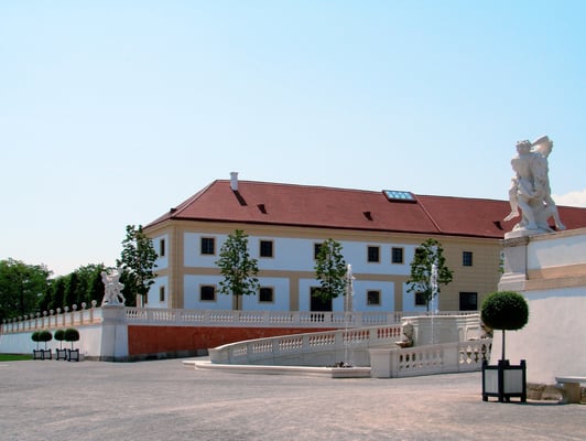 1726 erwarb Prinz Eugen Schloss Hof, eine zu seinen Zeiten noch weit bescheidener ausgeführte Anlage, und beauftragte den Architekten Lukas von Hildebrandt, es zu einem prunkvollen,